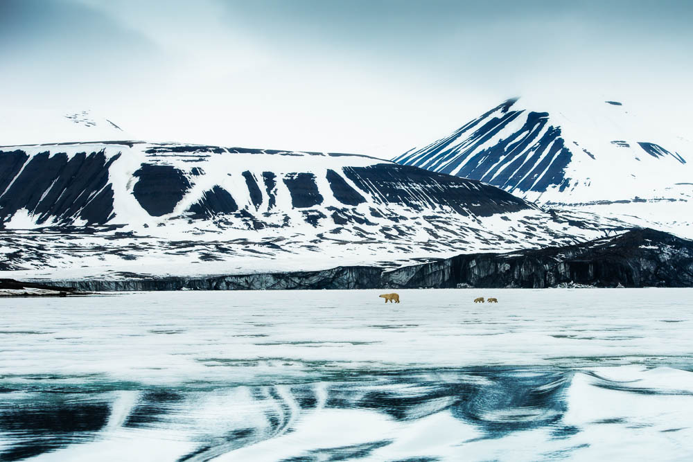 As the sea ice retreats, polar bears enter the final stage of their seal hunting on fjord ice. Some bears may still be found in sheltered fjords, often near glacier fronts.