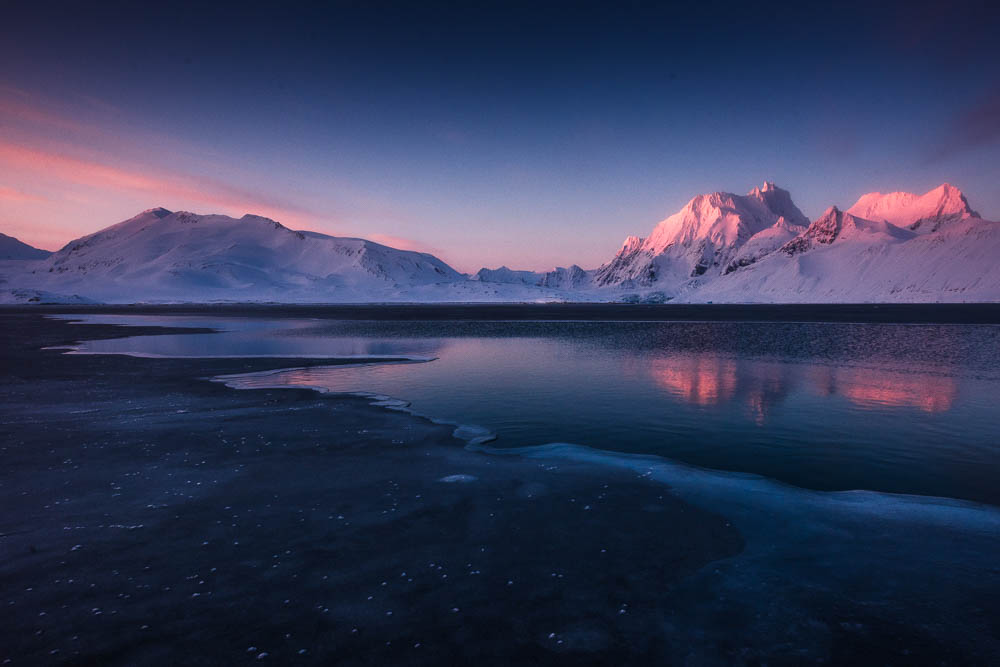 The western coast of Svalbard is renowned for its dramatic landscapes, making it a paradise for landscape photographers, especially in March and early April.
