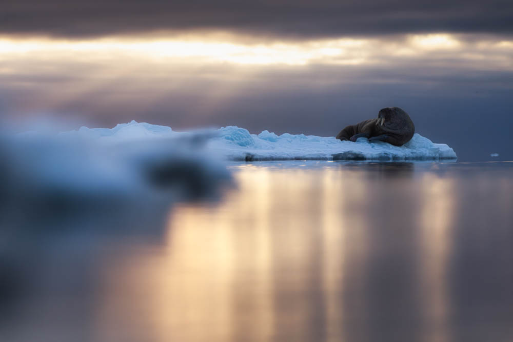 Walruses and seals can be found resting on ice floes at sea or in the fjords. In late winter, when sea ice is not blocking the beaches, walruses may also rest on land in the snow.