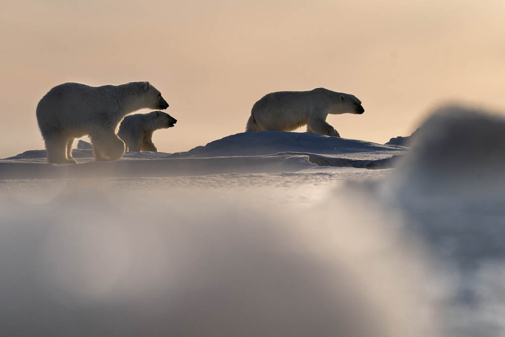 Polar bears can be found on drifting sea ice, fjord ice, or along the shoreline. In April, polar bear mothers with cubs can hopefully be seen on the fjord ice after leaving their dens.